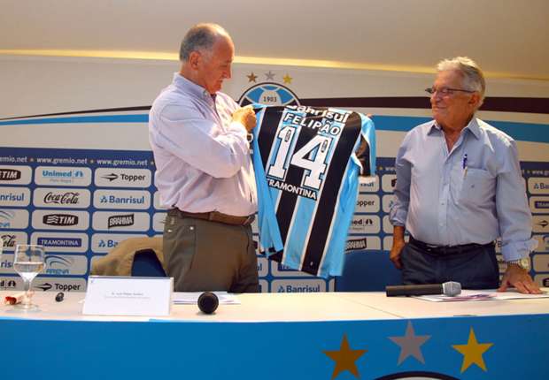 O Grêmio confirmou oficialmente a chegada de Luiz Felipe Scolari para o cargo de técnico, que estava vago desde a demissão de Enderson Moreira, no último domingo. Presidente do clube gaúcho e amigo de Felipão, Fábio Koff estava em São Paulo e convenceu o treinador da seleção brasileira na última Copa do Mundo a não tirar um tempo de férias. O técnico, muito criticado pela campanha do Brasil no Mundial, deve chegar em Porto Alegre nesta quarta-feira.